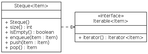 iterator (a method of Iterable interface that must be implemented in Steque class) returns new Iterator<Item> that iterates over items in steque.