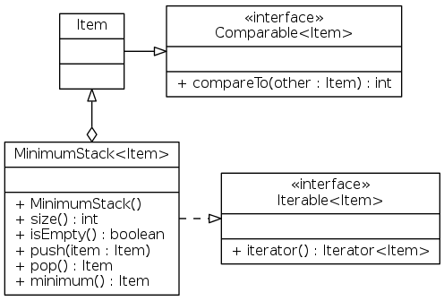 You may assume that the items are Comparable (MinimumStack<Item extends Comparable>), and your implementation may use the Stack data type from the provided algs4.jar library.
