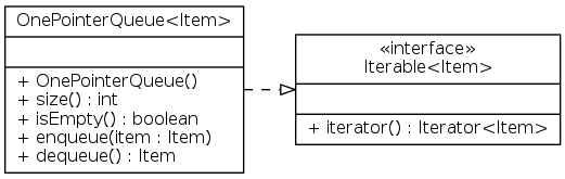 | 3pts | Efficient implementation of OnePointerQueue (only if ≥2pts Correct) |