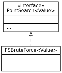 Both implementations will implement the generic PointSearch interface, which is a symbol table with Point as key and the generic type Value as value.