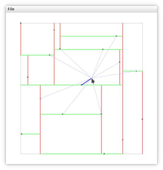 As you move your mouse over the window, light blue lines are drawn to the \(k\) nearest neighbors to the location under the mouse cursor, and a dark blue line is drawn to the closest point.