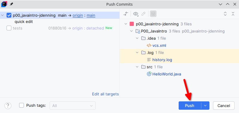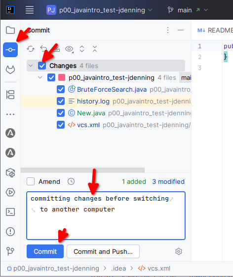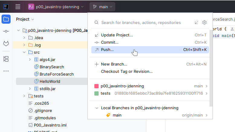 IntelliJ has a built-in git system that makes it simple to clone, commit, push, and pull, but you will need to create an access token to give IntelliJ permission to work with CSE GitLab.