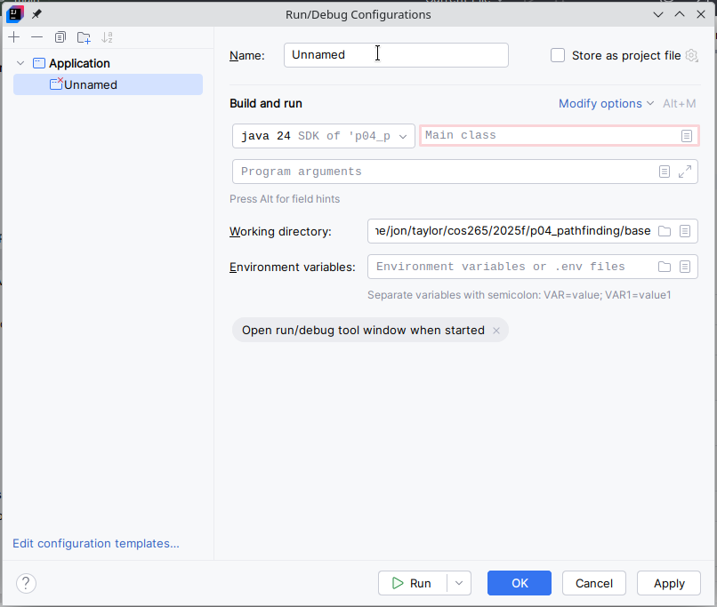 All JetBrains products assume that the project files are on the local machine. Since you will likely be using the lab machines, and therefore the files are mapped in from a network drive, IntelliJ might run very slowly or stop respondind altogether. This seems to happen more often under Windows than under Linux. If this happens to you, try logging in under Linux, or copy the project folder to the local machine.