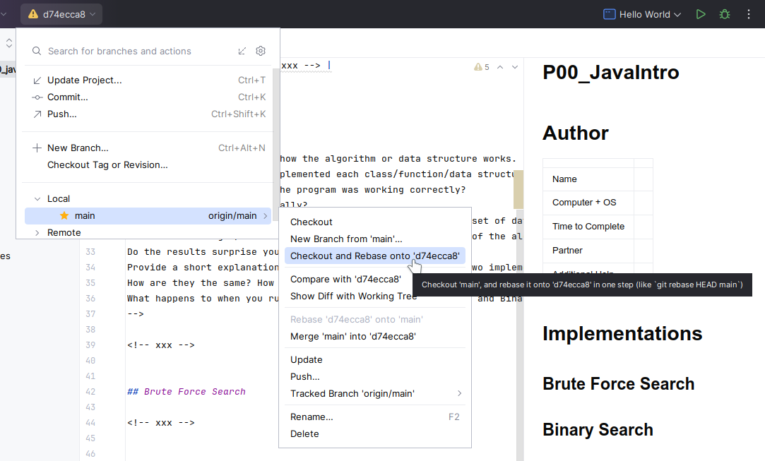 In the screenshot below, there are two folders called P00_JavaIntro, but only one (the selected one that the mouse is hovering) is the correct project folder.