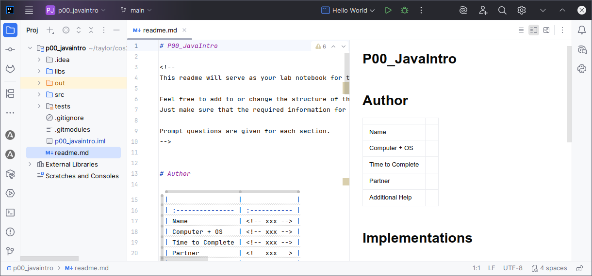 The sections below describe how to set up each assignment. You will need to follow these steps at the start of every assignment.