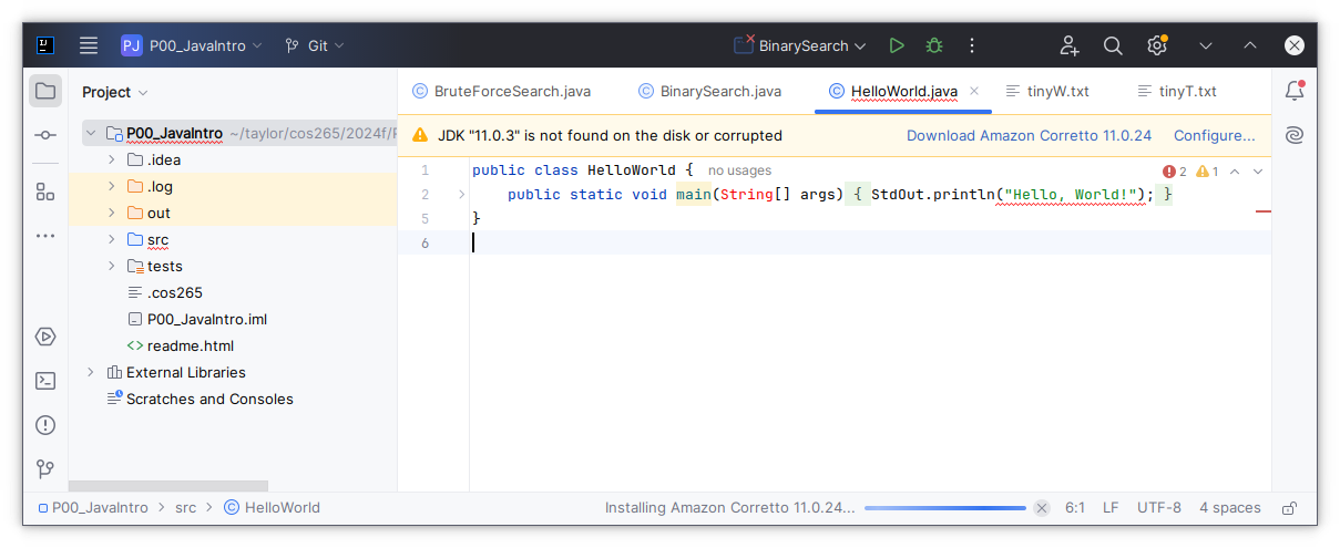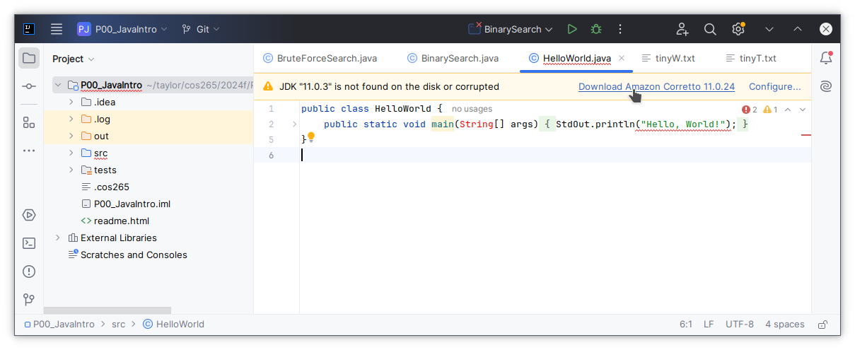 If you plan to work only on the CSE machines in COS265, you can skip to the next section. If you would like to use your own machine, you will need to install IntelliJ.