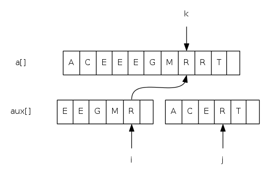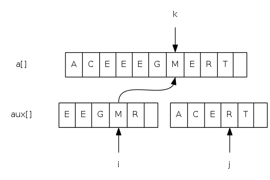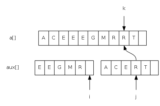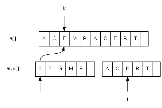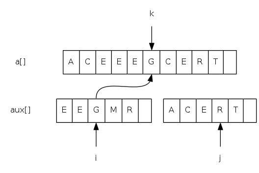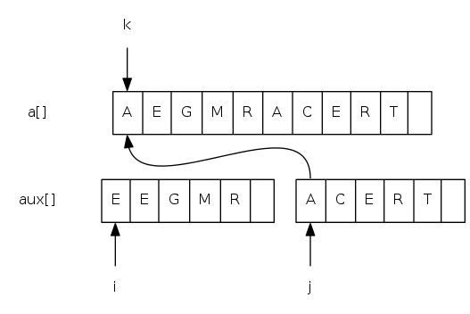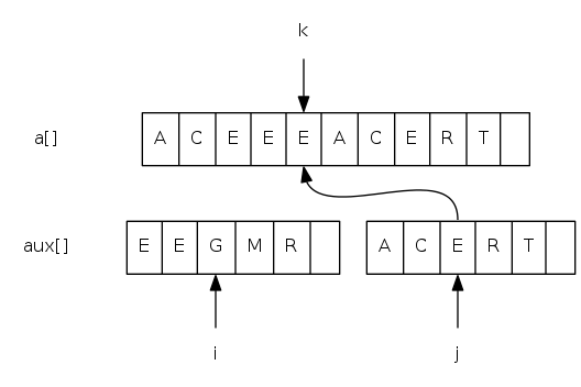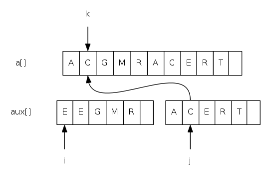 else if(less(aux[j], aux[i])) a[k] = aux[j++];