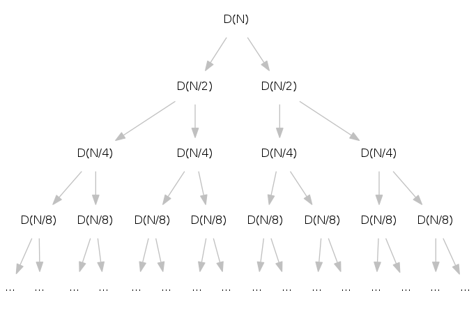 \[D(N) = 2 D(N/2) + N, \text{ for } N > 1, \text{ with } D(1) = 0\]
