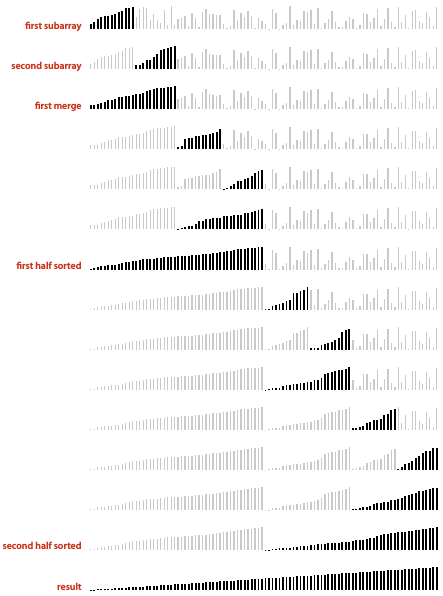 | merge | ✔ | \(\onehalf N \lg N\) | \(N \lg N\) | \(N \lg N\) | \(N \log N\) guaranteed; stable | |