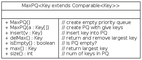 Note: Duplicate keys allowed; delMax() and max() picks any maximum key