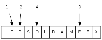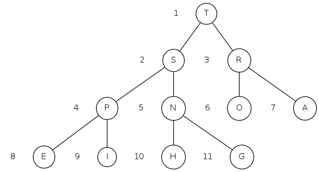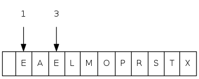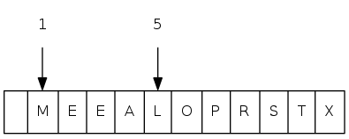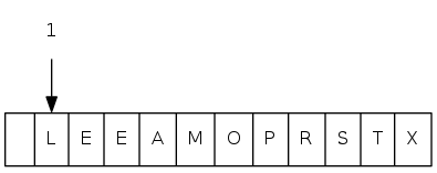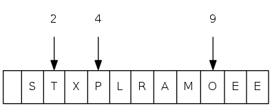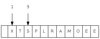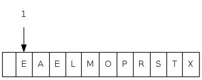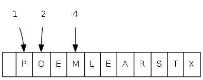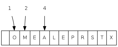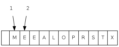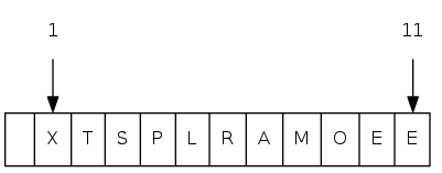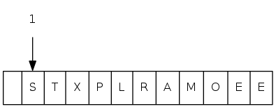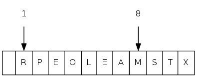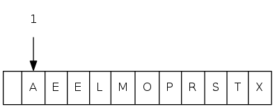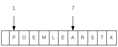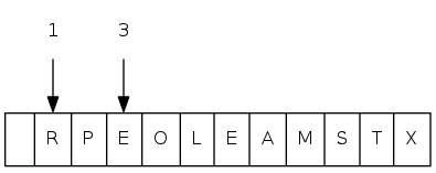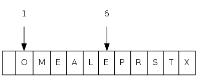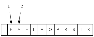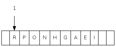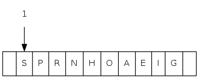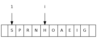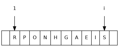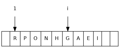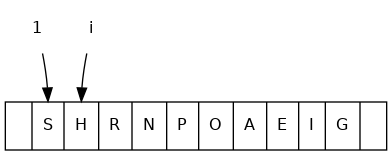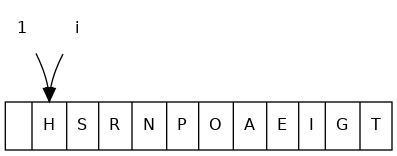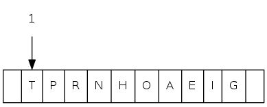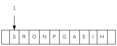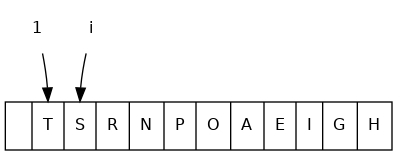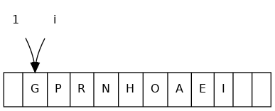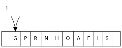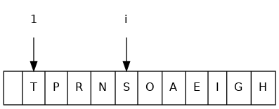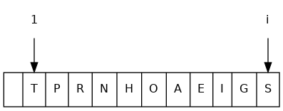 0 1 2 3 4 5 6 7 8 9 10 11 a[i] = [ . T S R P N O A E I H G]