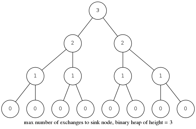 Proposition: Heap construction uses \(\leq 2N\) compares and \(\leq N\) exchanges
