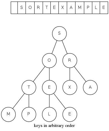 Proposition: Heapsort uses \(\leq 2N \lg N\) compares and exchanges, though algorithm can be improved to \(\sim 1 N \lg N\) (but no such variant is known to be practical, see Adaptive heap sort)