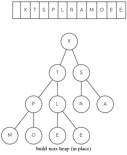 Heap construction: build max heap using bottom-up method (we assume array entries are indexed 1 to N)