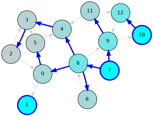 Ex: \(S = \{ 1, 7, 10 \}\) Shortest paths to...