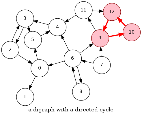 Goal: Given a digraph, find a directed cycle. Solution: DFS. What else? see textbook |