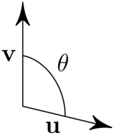 where \(\theta\) is angle between \(\u\) and \(\v\)